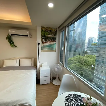 تتميز مرافق الخدمة الذاتية بالمطبخ المجهز الذي يشتمل على الغلاية الكهربائية وأدوات المطبخ والآنية الزجاجية. تقع محطة مترو كانغنام القريبة على مقربة من الشقة بمساحة 27 مترًا مربعًا.